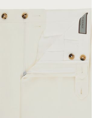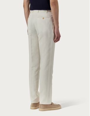 Beige Hose ohne Bundfalten mit hohem Bund aus Wolle